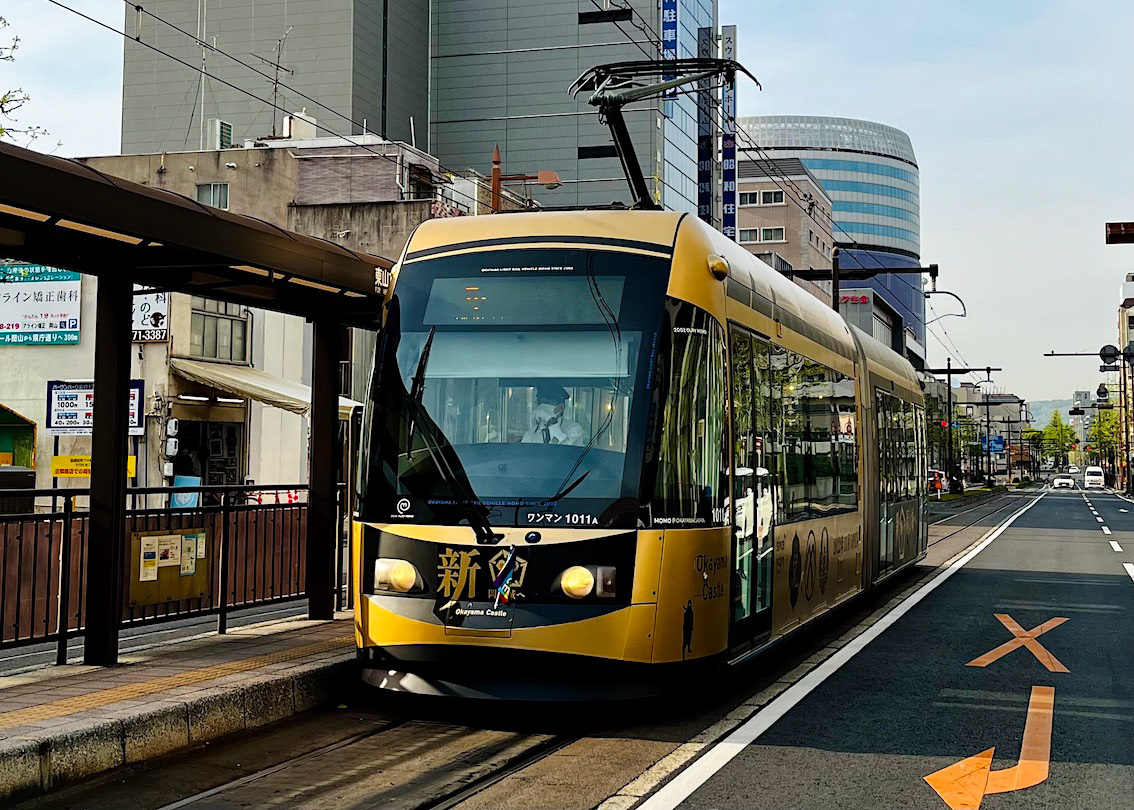 岡山市内を走る岡電の新型車両MOMOをラッピング(MOMOとしては初めてのラッピング仕様)。連結する2両をそれぞれ金色と黒色に仕上げ、「金烏城」の異名を持つ岡山城のイメージにデザインしました。僕はデザイナーではありませんが、自分の手を動かしてデザインまで担当することが多々あります。その顛末を絵日記風にまとめたので合わせてご覧ください。